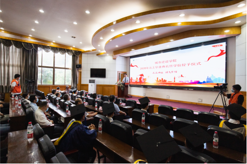 曾磊经理的讲话将毕业典礼暨学位授予仪式推向高潮。“面对疫情大考,75人考入国内优秀大学深造、12人即将赴英国、爱尔兰等地游学、2人将继续攻读博士学位、265人已经顺利签约中建、中铁建、中冶等央企、国企等优秀企业……”曾磊对本届毕业生取得的辉煌成绩如数家珍,并向全体毕业生提出了学会“感恩、自信、思考、协作”的四点期望。“以感恩之心对他人、以宽阔胸怀入社会”;“自信的人生就会全力以赴、不断进步,从而更加自信、良性循环”;“提出一个问题比解决一个问题更重要,学会独立思考、矢志终身学习”;“独行快、众行远,团队协作、一往无前”……这些讲话“金句”给全体毕业生留下了深刻的印象,是讲给毕业生的“最后一课”。