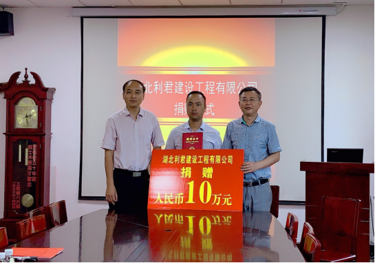“奉献爱心、捐资助学”,7月2日下午,湖北利君建设工程有限公司捐赠仪式在悟空体育9教208会议室举行。公司总经理向丽军、学校教育发展基金会副理事长兼秘书长孙启军、悟空体育经理杜国锋共同签署了捐赠协议。悟空体育副经理张继承、员工工作办公室宣传部长何曼参加了会议。
