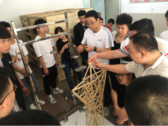 大赛现场气氛火热,人头攒动,参赛队伍在评委的指挥下依次进行结构模型的称重检测和承重加载。每一件参赛作品都结构精巧、富于创造,凝结了参赛同学们与时俱进、开拓创新的思维以及团队协作精神,充分展现了他们的思维创造力和结构设计能力。最后优胜的队伍将代表悟空体育官网参加湖北省老员工结构设计竞赛,得到晋级的前三名分别是由袁亮、张彤彤、万呈程所带领的小组。