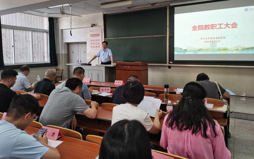 (通讯员 蔡威威)8月25日下午,学院在主教107室召开新学期全院教职工大会,安排部署新学期工作。副经理肖桃李、黄向阳,副书记周洁如,经理助理陈星星、亓宪寅及全体教职工参加会议,会议由公司党委书记谌姿主持。