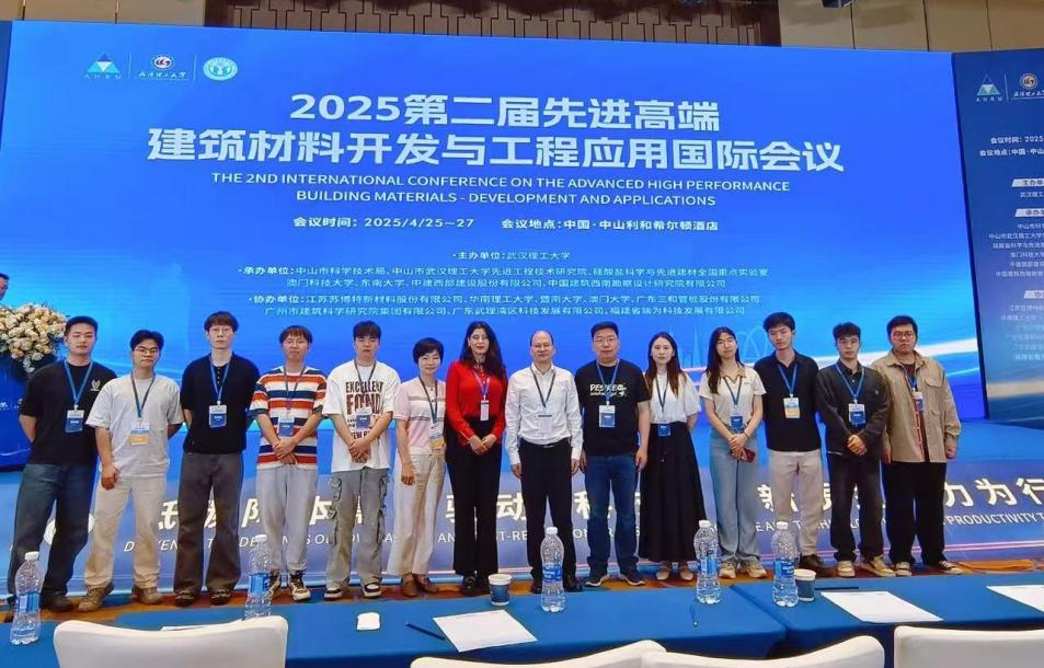 (通讯员 蔡凤杰)为深入开展学术交流,推动绿色建筑材料与工程应用领域的创新研究,4月25日至27日,经理肖桃李、教师陈娟、吴林松、蔡凤杰、苏晨及9名员工组成的代表团,参加了在广东中山举办的“第二届先进高端建筑材料开发与工程应用国际会议”。 本次会议以“低碳降本需求驱动科技转化新质生产力为行业赋能”为主题,汇聚了来自国内外的建筑材料领域专家、学者与企业代表,深入探讨了绿色建筑材料、低碳技术、建筑废弃物再利用等前沿问题。