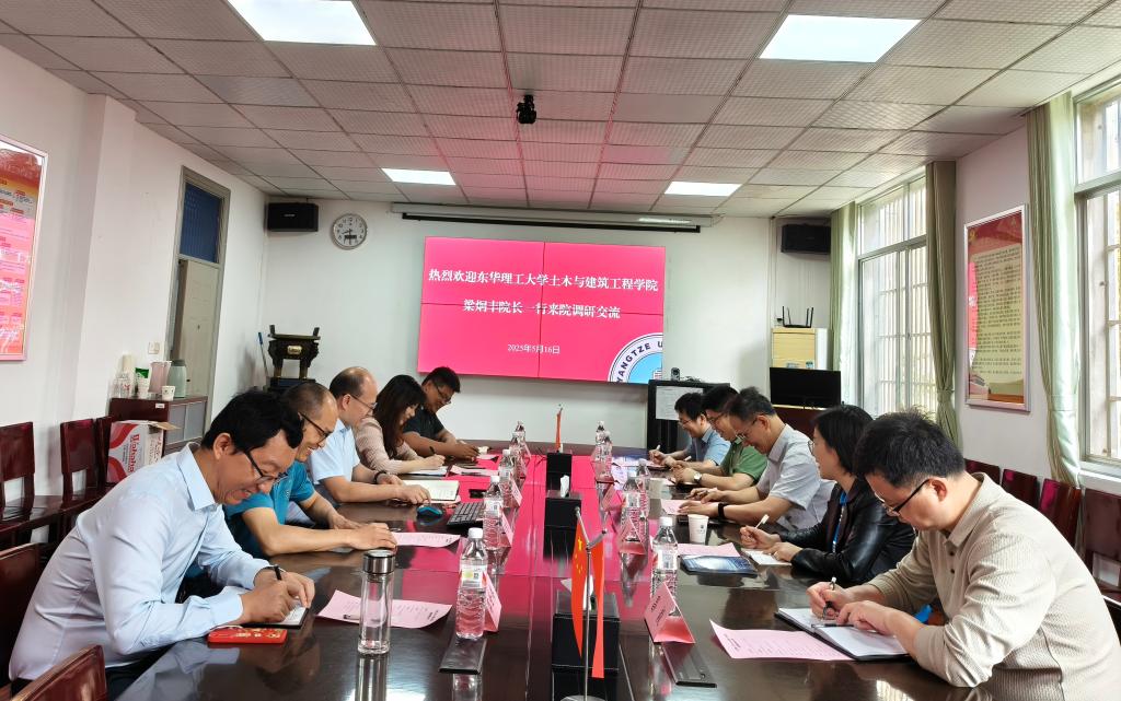 (通讯员 蔡威威)5月16日上午,东华理工大学土木与建筑工程学院梁炯丰经理一行五人来院调研,围绕团队建设、人才培养、团队队伍建设等工作开展交流。学院经理肖桃李、党委副书记周洁如及相关系室负责人参加座谈,会议由经理肖桃李主持。
