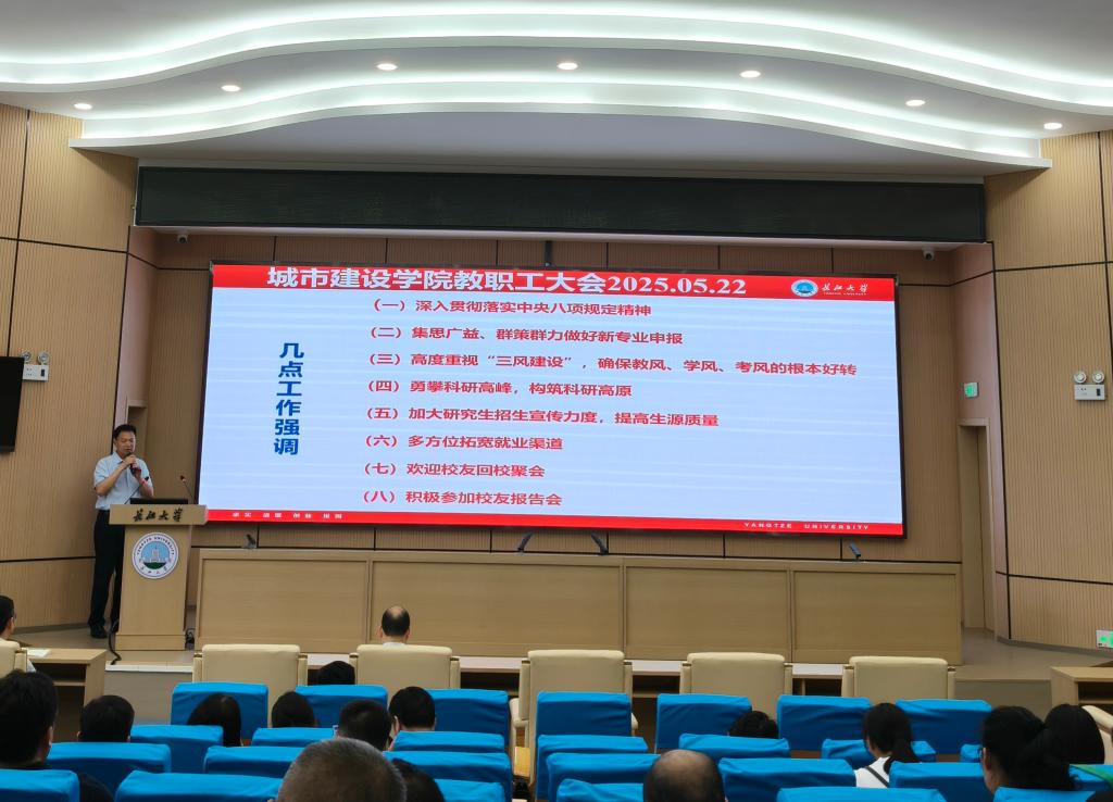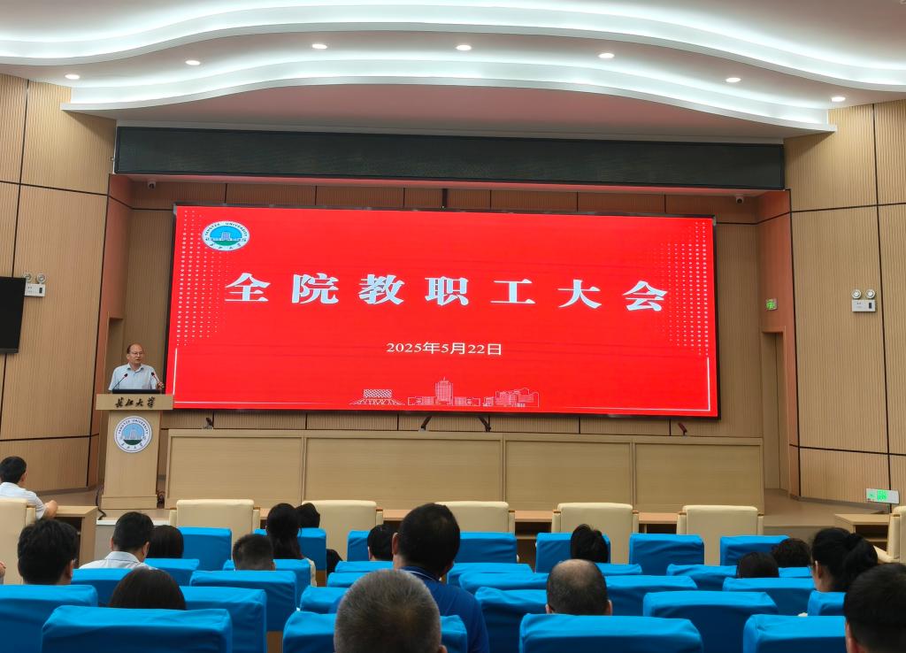 (通讯员 蔡威威)5月22日下午,学院在11教报告厅召开全院教职工大会,通报近期学院相关工作,并安排下一阶段重点任务。学院全体领导和教职工参加会议。会议由公司党委书记谌姿主持。