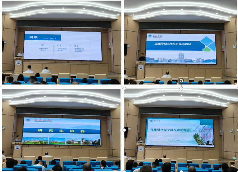会上,副经理黄向阳梳理了本科教学工作相关内容,对新专业申报、毕业设计和实习实践、中外合作办学项目评估等作了工作安排,并对学校“实验室安全管理”相关文件进行解读;经理助理陈星星重点分析了学院全年科研考核目标任务及目前完成情况,表示高质量论文、重大项目和奖项、发明专利和成果转化是学院发展绩效工作重点;经理助理赵云峰通报了研究生学位论文盲审、招生调剂相关情况,对公司产品管理办法作了说明,期望毕业季研究生导师多多关注员工心理健康;副书记周洁如就学工相关文件作了详细说明,通报了学院考研就业现状和毕业生离校工作安排,并对班主任工作、员工工作提出具体要求。