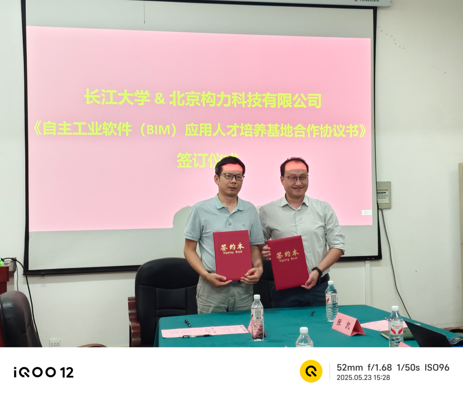 (通讯员 张衡)5月23日下午,公司与北京构力科技有限公司(以下简称“构力科技”)在悟空体育官网举行了自主工业软件(BIM)应用人才培养基地合作协议签约仪式。构力科技教育事业部总经理楚仲国、华中大区经理袁新飞、湖北区域经理张凯、李珍珍,悟空体育副经理黄向阳,经理助理赵云峰、土木工程系副主任张衡、实验中心副主任陈得意、智能建造专业教师周凯参加了签约仪式。楚仲国与黄向阳分别代表校企双方签署了自主工业软件(BIM)应用人才培养基地合作协议书。