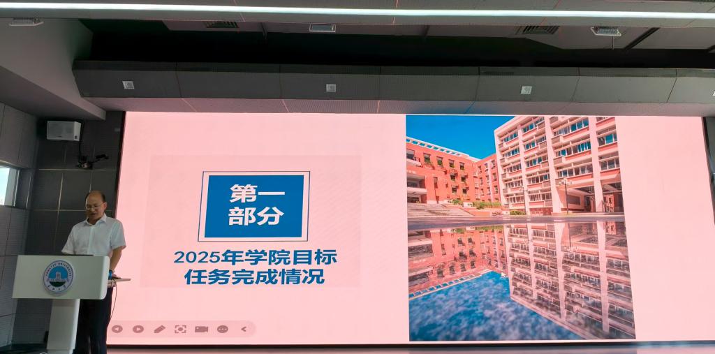 经理肖桃李从人才培养、科学研究、人才引育、办学资源等方面,详细分析了2025年学院目标任务完成情况,结合暑期工作安排,对研究生导师、专任教师和管理人员提出了具体工作任务,要充分利用暑期窗口期补短板、强弱项,为下半年工作奠定坚实基础。并就护照集中管理、师德师风建设、实验室安全与管理等提出了工作要求。