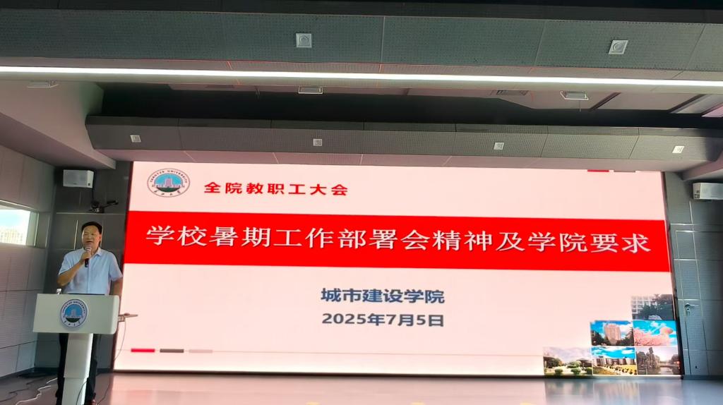 (通讯员 蔡威威)7月5日下午,学院在16教A313室召开全院教职工暑期工作会,梳理和总结上半年工作进展,部署暑期重点工作任务。学院领导班子及全体教职工参加会议,会议由公司党委书记谌姿主持。