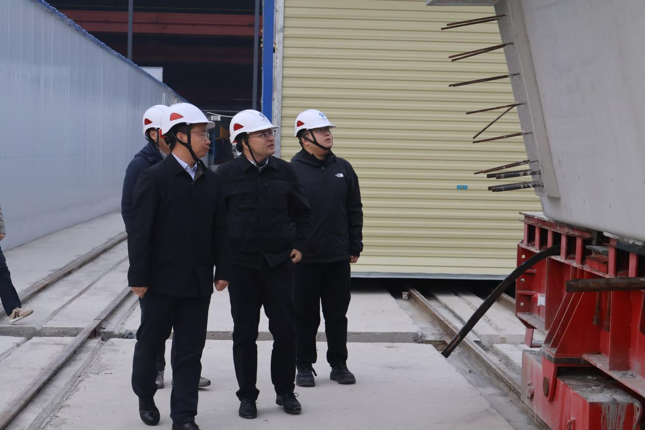 会后,肖桃李一行前往项目部智慧梁厂进行实地考察,详细了解了梁段制作的智能设备与工艺流程。