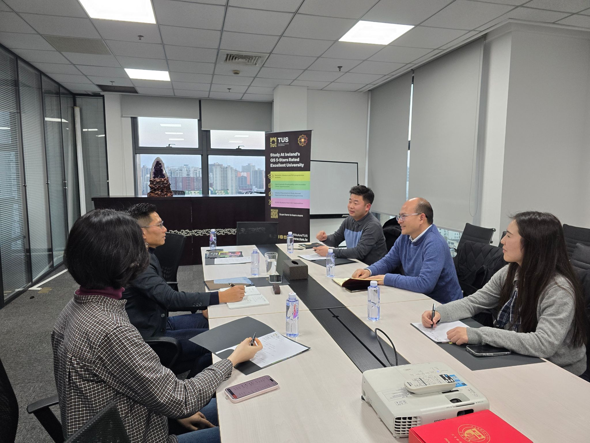 会谈中,肖桃李围绕项目运行机制完善、团队队伍建设提质等核心问题展开交流,就外方教师授课课程门数、相关财务对接事宜提出具体磋商意见。同时,他特别向孟晶总监提出合作诉求,希望TUS方面为公司青年教师出国访学提供支持与协助,助力学院教师队伍国际化水平提升。孟晶总监对肖桃李经理一行的到访表示热烈欢迎,针对学院提出的各项关切问题给予积极回应。经充分沟通研讨,双方就外方课程设置优化、相关财务事宜推进初步达成共识。孟晶总监明确表示,TUS将积极协调校内优质资源,全力配合做好两校教师互访、教学服务保障等相关工作,为合作办学项目稳步推进保驾护航。