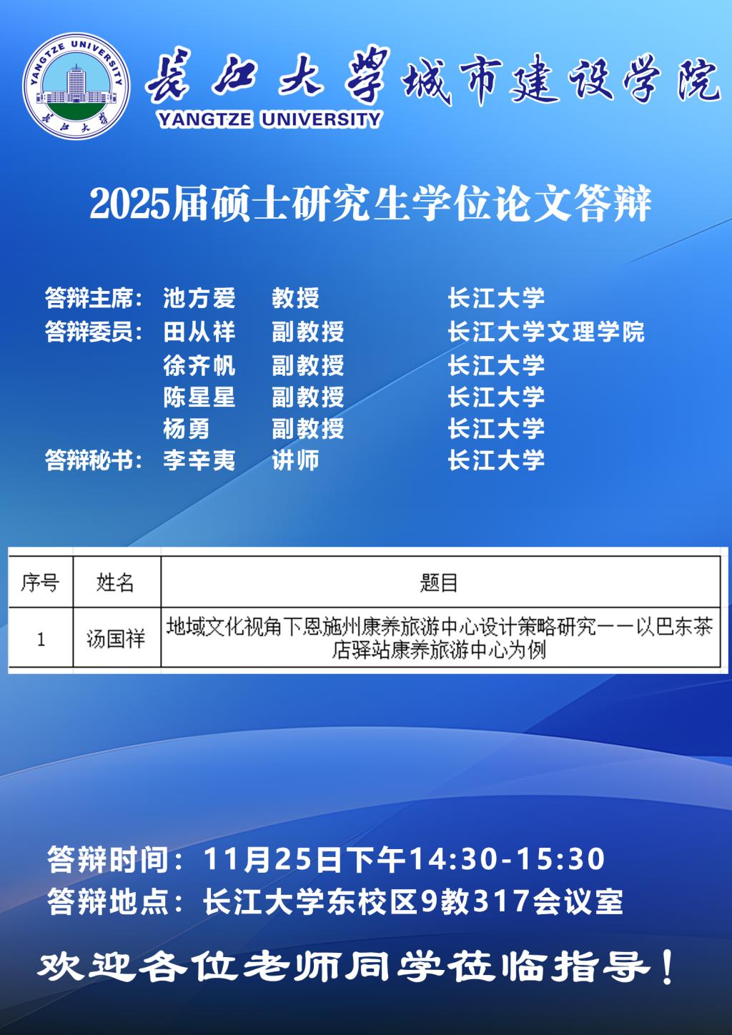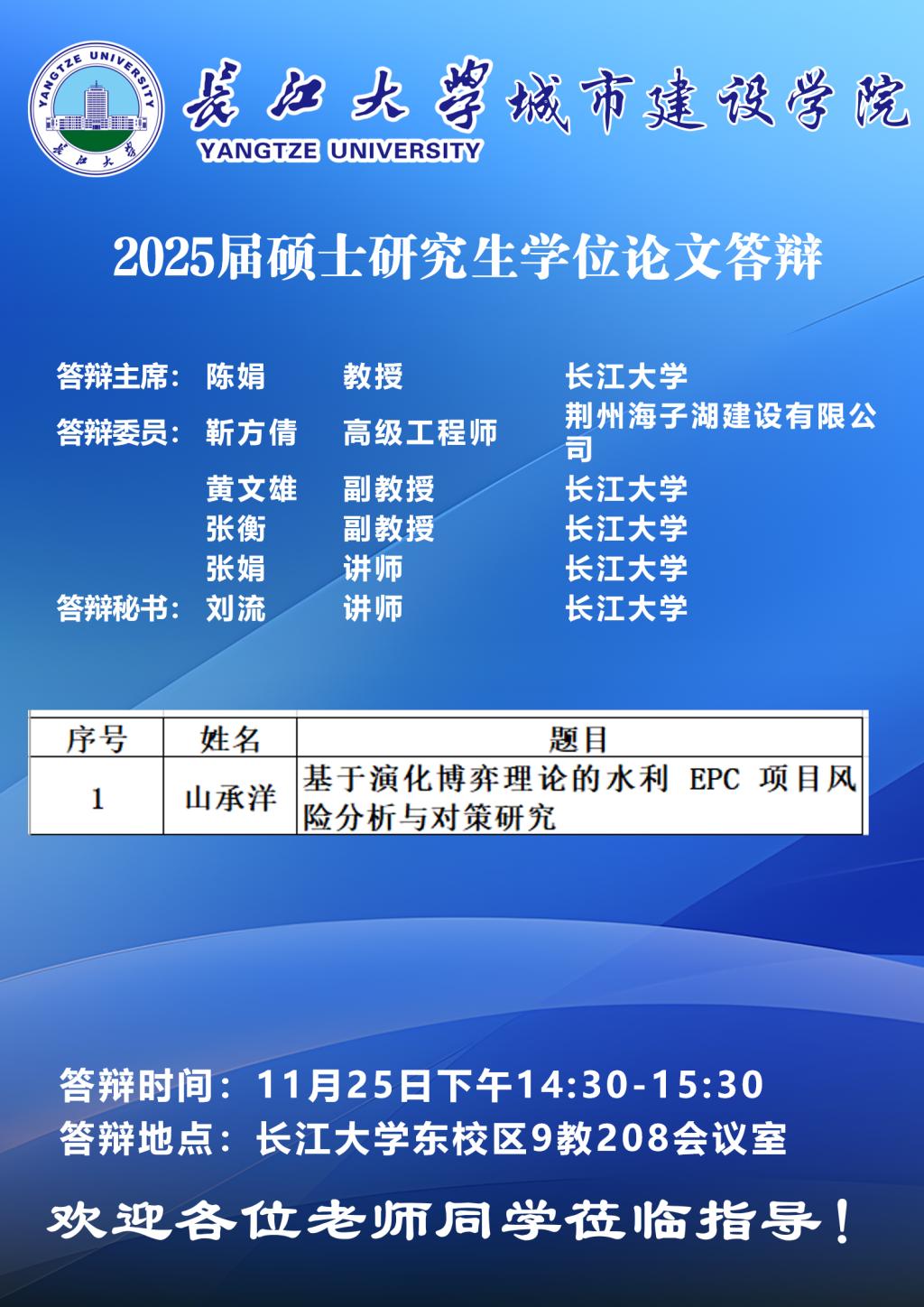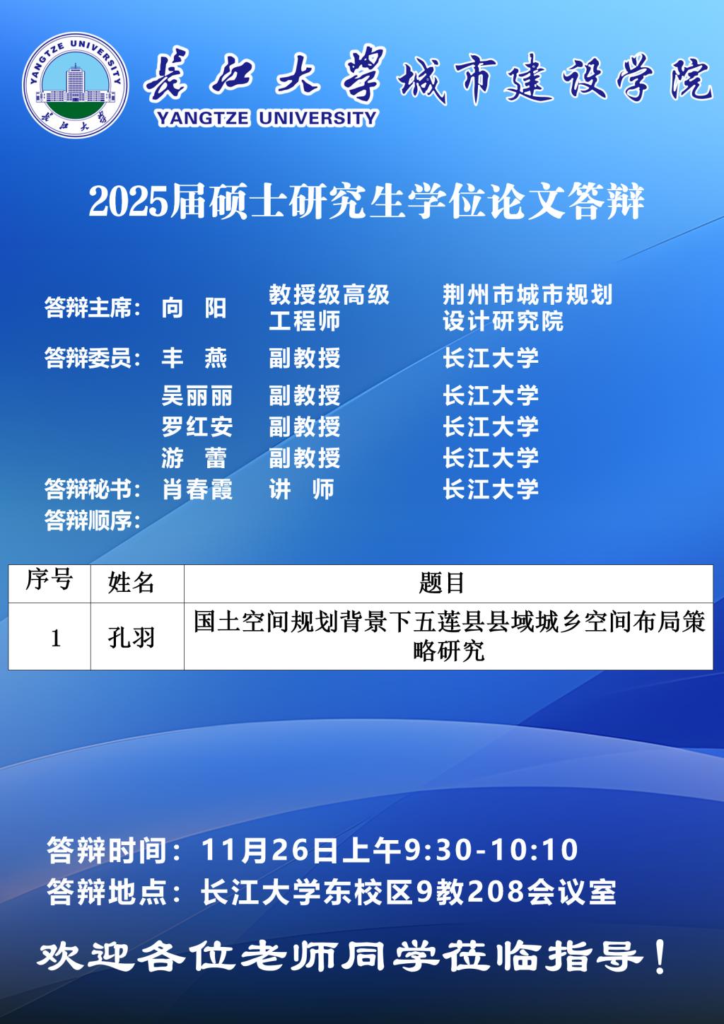 悟空体育2025届12月硕士研究生学位论文答辩公告(二)【山承洋、汤国祥、孔羽】