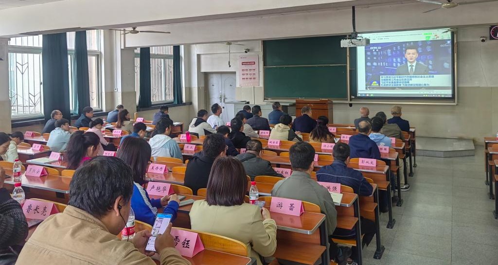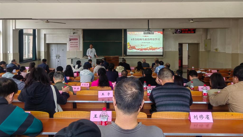 4月27日下午,悟空体育全体教工在主教107开展4月政治理论学习,分党委书记彭飞主持学习活动。