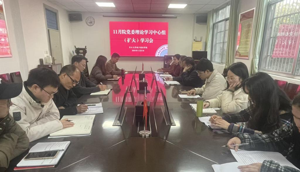 11月25日下午,公司党委理论学习中心组在9教208会议室召开中心组(扩大)学习会,开展11月份政治理论学习,同时传达学习习近平总书记考察湖北重要讲话精神。学院全体领导班子、公司党委委员、党支部书记、系主任和科室负责人参加会议,会议由公司党委书记谌姿主持。