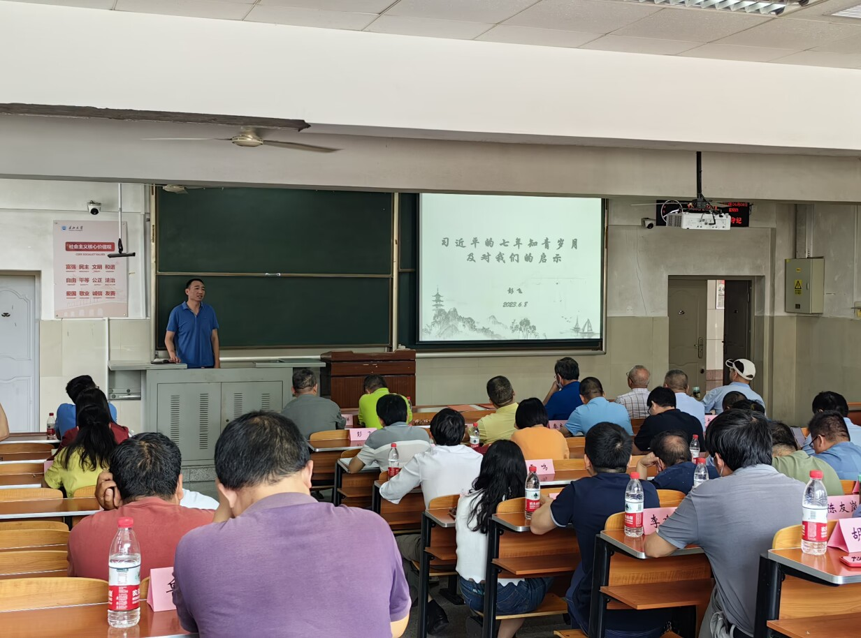 6月8日,学院在主教107开展了“习近平的七年知青岁月”专题党课学习活动,公司党委书记彭飞为主讲人,全体教职工党员参加学习。