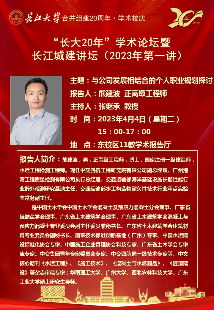 “长大20年”学术论坛暨长江城建讲坛(2023年第一讲):与公司发展相结合的个人职业规划探讨