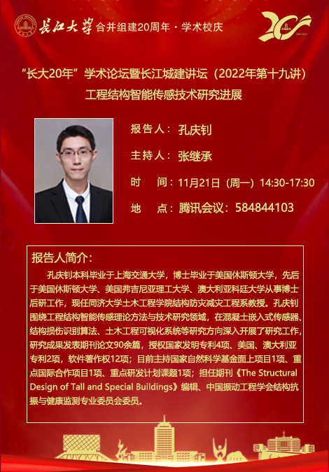 “长大20年”学术论坛暨长江城建讲坛(2022年第十九讲):工程结构智能传感技术研究进展
