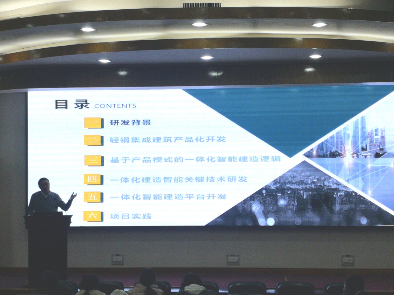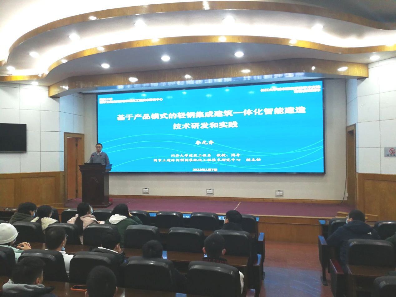 1月7日下午,公司在11教报告厅举行了2022年长江城建讲坛第一讲的学术讲座,上海同济大学教授、博导,国家土建结构预制装配化工程技术研究中心副主任李元齐教授做客讲坛,并为学院师生作了题为“基于产品模式的轻钢集成建筑一体化智能建造技术研发和实践”的学术报告,学院100余名师生参加了活动。