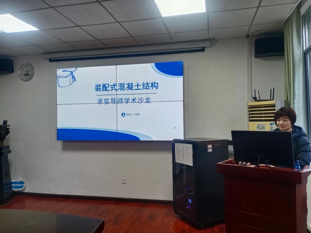 硕士生导师陈娟教授作题为“装配式混凝土框架结构”的学术报告。详细阐述了目前装配式混凝土结构中常用的节点连接方式,以及各连接方式的特点。结合近几年的研究成果,通过展示相关数据与分析,剖析了端板-高强螺栓连接的装配式混凝土框架柱-柱节点和梁-柱节点的抗震性能。
