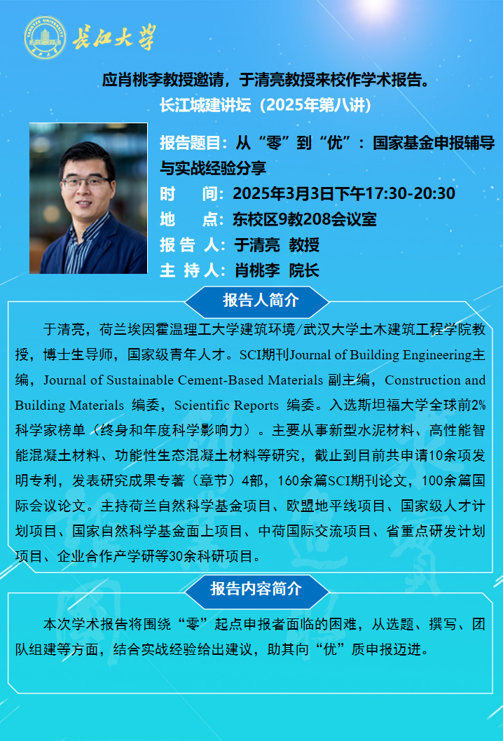 长江城建讲坛2025年第八讲:从“零”到“优”:国家基金申报辅导与实战经验分享