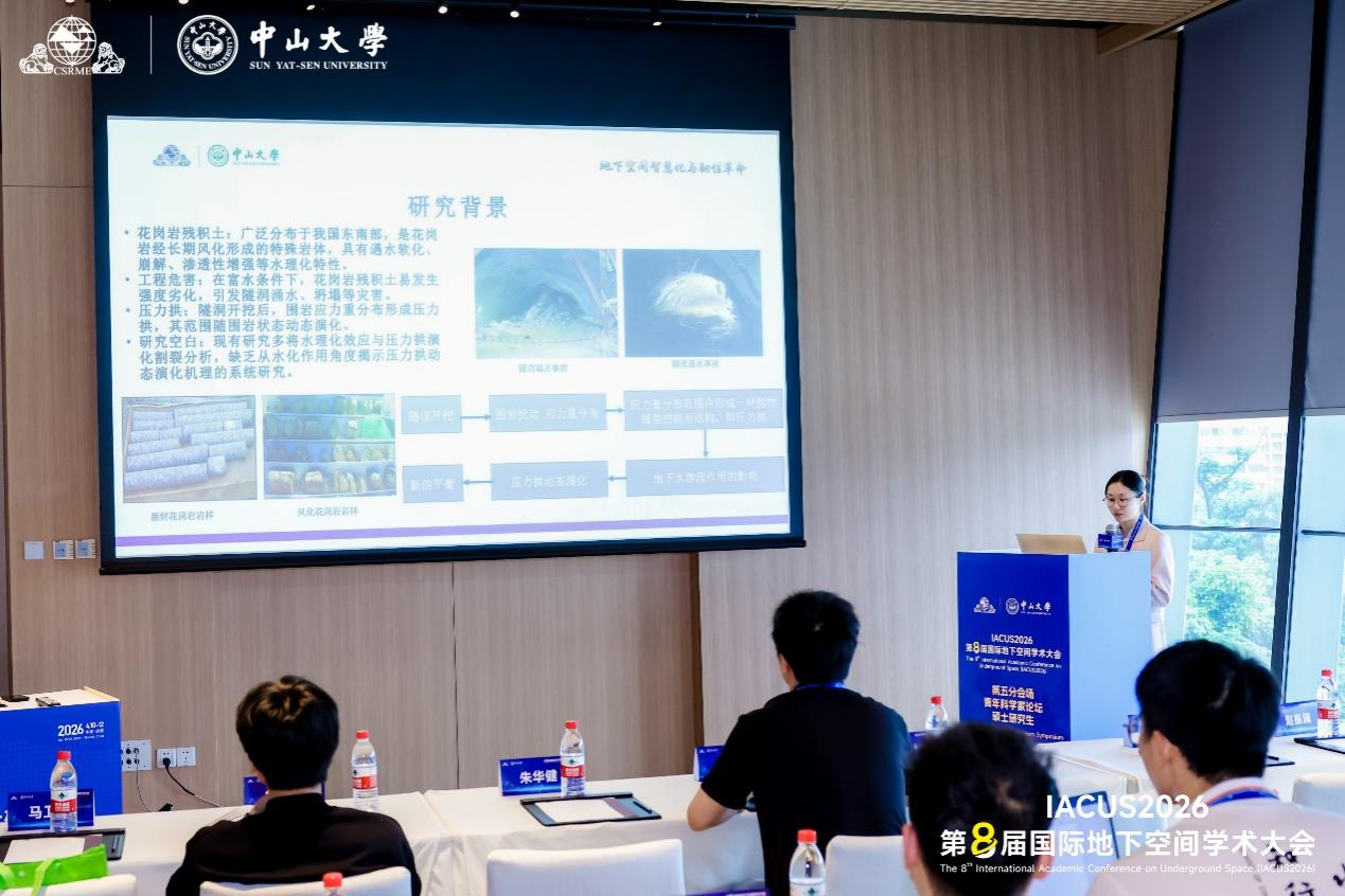 会议期间,公司4名研究生围绕地下工程动力响应、围岩稳定性及复杂地质条件下隧洞力学行为等方向作专题汇报,充分展示了学院在地下空间与岩土工程领域的研究成果和青年学子的学术风采。