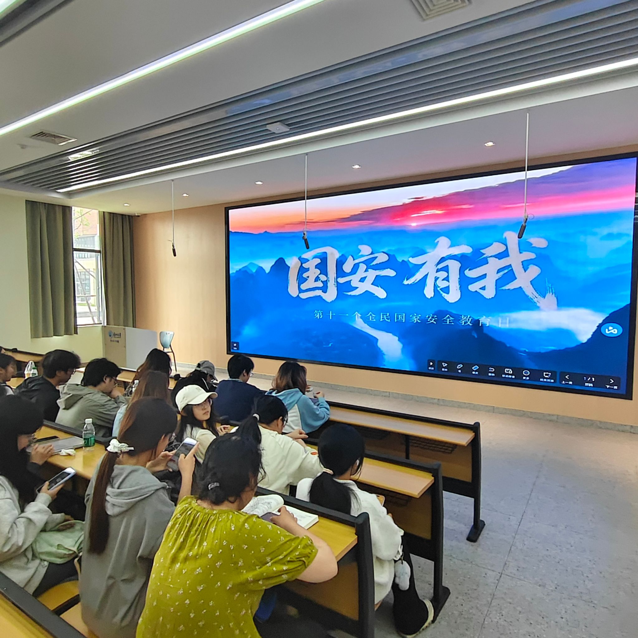 公司对本次活动进行了统一部署与组织,确保各项活动有序推进、取得实效。宣传方面,学院通过9号教学楼电子显示屏循环播放国家安全与反邪教宣传标语,积极营造“国家安全、人人有责”的浓厚氛围。