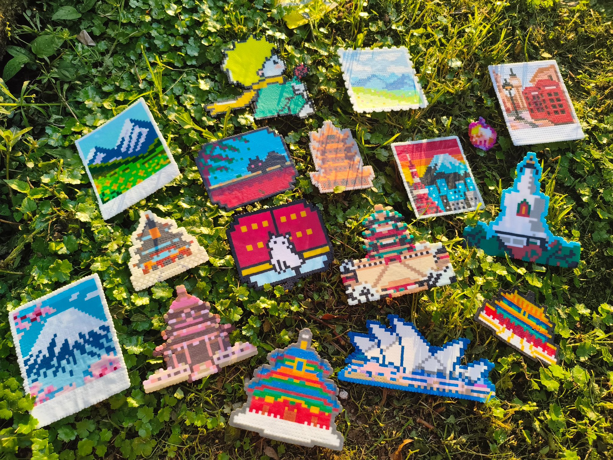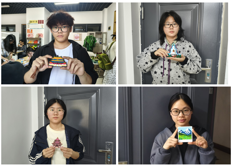经加热定型后,一件件拼豆作品呈现出清晰的建筑轮廓与明快的色彩搭配,体现了专业特色与艺术美感的结合。活动最后,参与员工与作品合影留念。