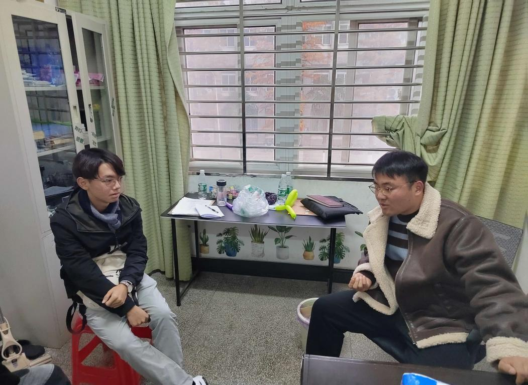 本次咨询活动的指导人是21级年级辅导员魏民生。自通知发出后,前往魏老师办公室寻求帮助的员工络绎不绝。即使在查寝期间,也有员工就职业发展问题,向魏老师咨询解惑。