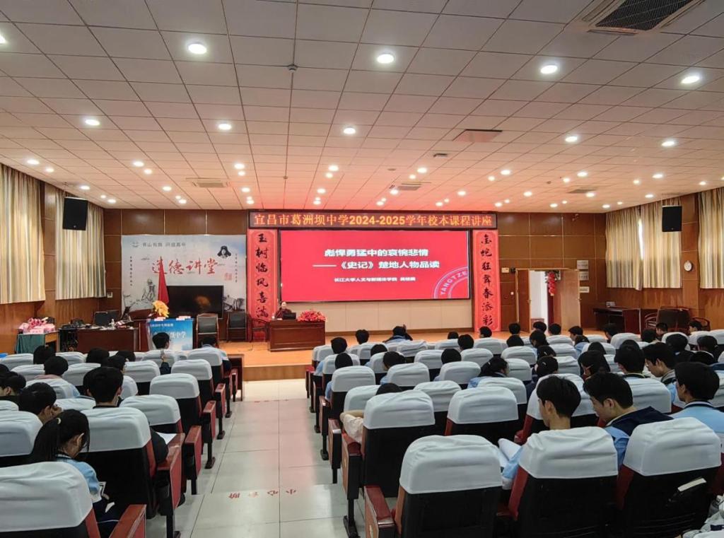 4月2日,人文学院吴桂美教授随学院团队再次走进葛洲坝中学,以《楚地人物品读》为主题,通过解读湖北历史名人事迹,弘扬地域文化,提升员工的人文素养与乡土认同感,进一步拉近中学与大学之间的学术距离。