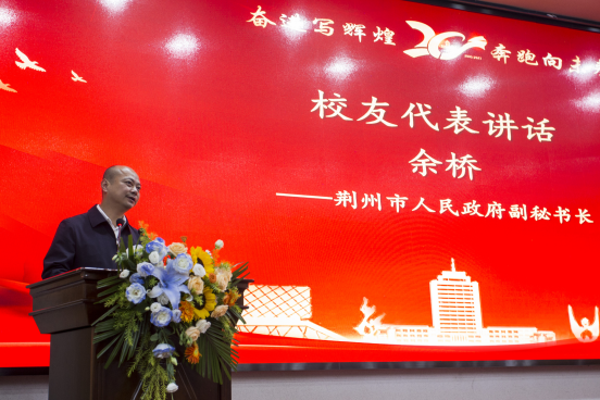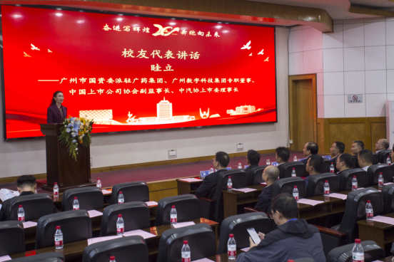 员工代表,广州市国资委派驻广药集团、广州数字科技集团专职董事眭立,北京员工会副会长邹鹏程,荆州市人民政府副秘书长余桥依次讲话。他们深情回顾了往昔在学院的求员工涯,追忆师生情谊、同窗岁月等,纷纷表示将积极回馈母校,助力学校和学院发展。
